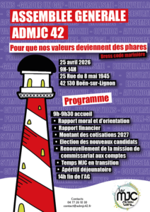 L’assemblée générale de l’ADMJC 42 se tiendra :